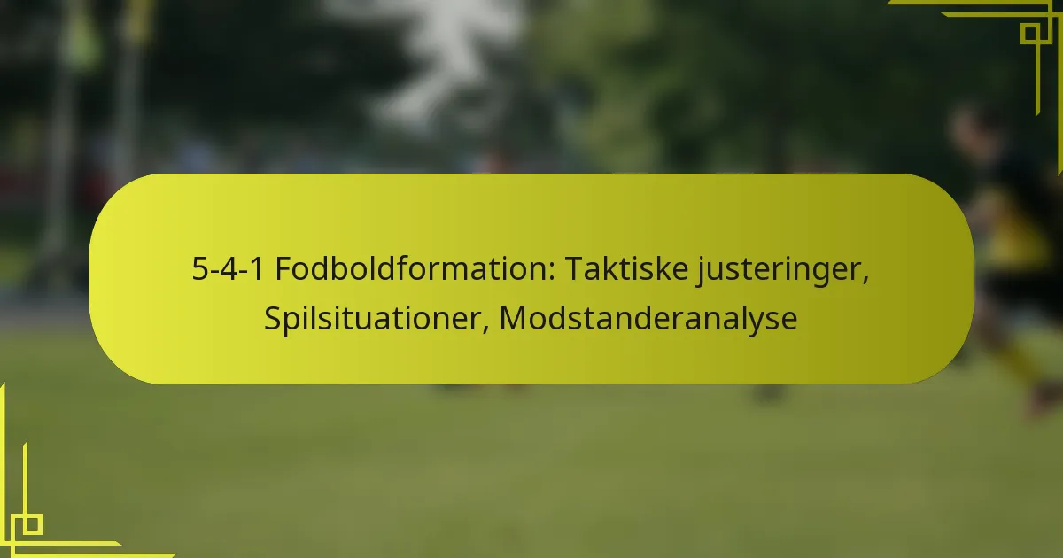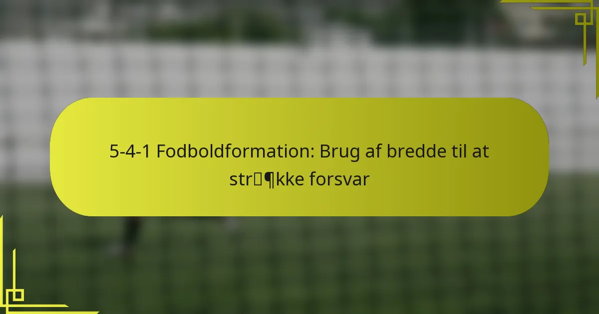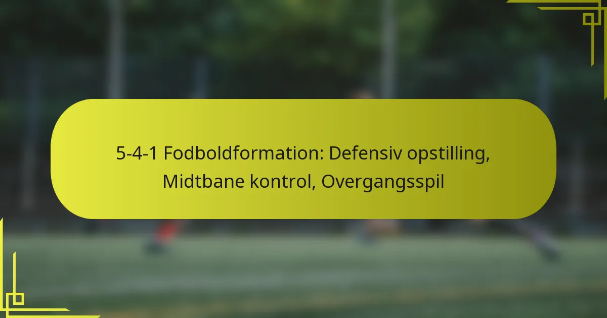 5-4-1 fodboldformationen er en taktisk opsætning, der understreger defensiv soliditet, mens den udnytter bredden til at udnytte modstanderens forsvar. Den består af fem forsvarsspillere, fire midtbanespillere og en enkelt angriber, hvilket skaber en kompakt struktur, der effektivt kan skifte mellem forsvar og angreb.